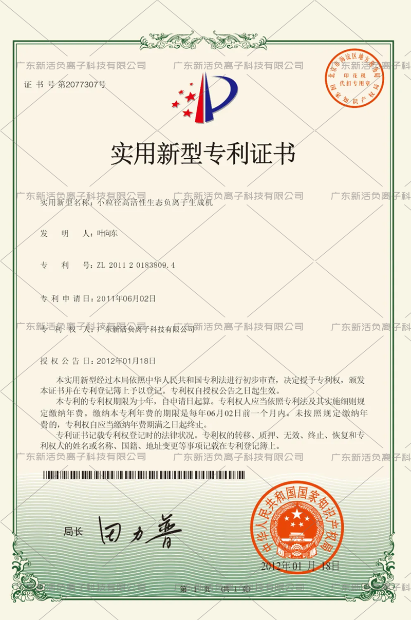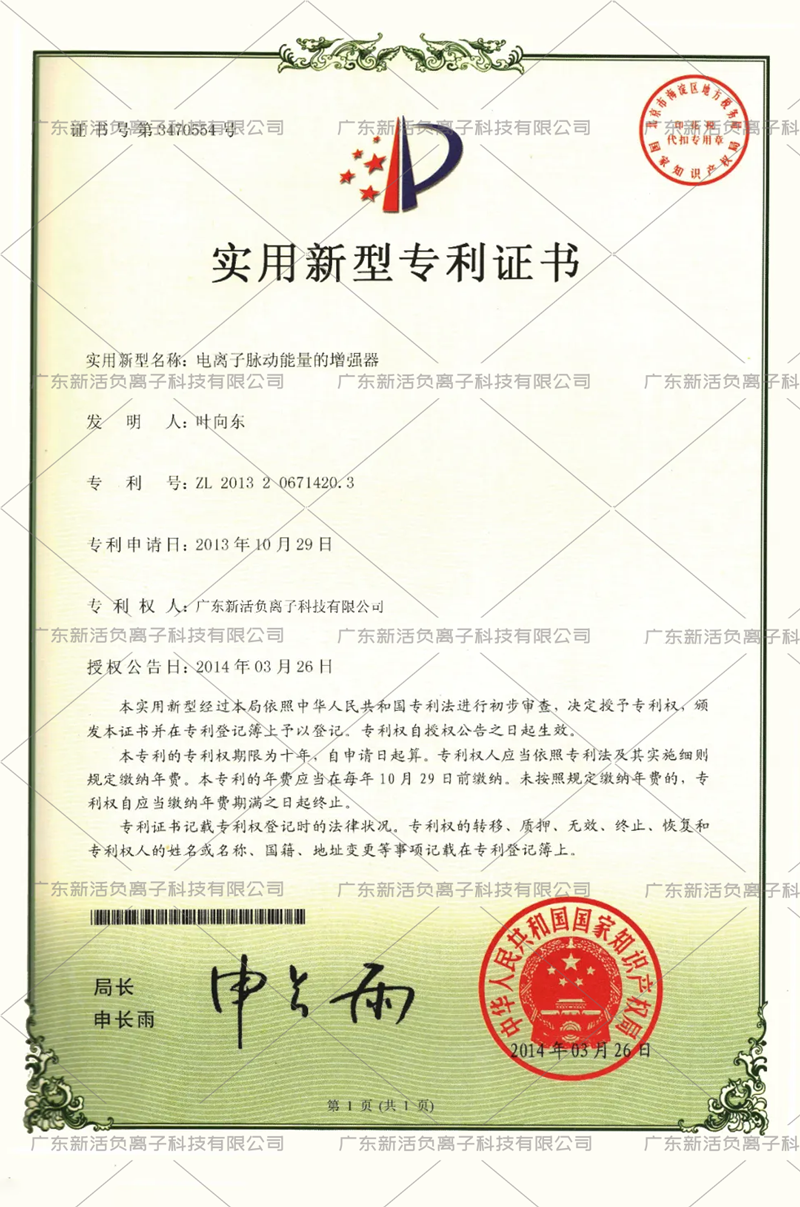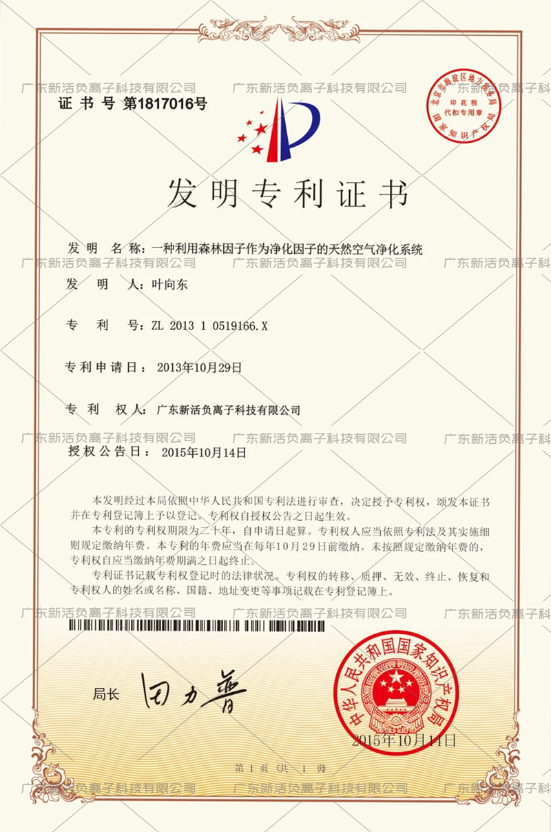 公司產(chǎn)品先后榮獲國家知識產(chǎn)權(quán)局專利授權(quán)100余項(xiàng)。旗下產(chǎn)品森肽基負(fù)氧離子生產(chǎn)機(jī)、森肽基空氣負(fù)離子空氣凈化器、班泰克斯負(fù)離子空氣處理器(中外合作項(xiàng)目)先后通過中國科學(xué)院、中國疾病預(yù)防控制中心……